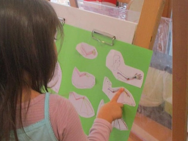 Folglich schauten sich die Kinder gemeinsam mit ihren Erzieherinnen und Erziehern die Dinge in der Natur genauer an. Was können wir von der Natur lernen? Und welche Formen und Strukturen gibt es in der Natur, die Vorbilder für technische Geräte sein könnten? Die Kinder beschäftigten sich mit dem Skelett der Fledermaus, untersuchten den Körperbau und die Flügel und verglichen den menschlichen Knochenbau mit dem einer Fledermaus. Sie bastelten anschließend mit ihrem Wissen einen großen Fledermausflügel aus Papier.