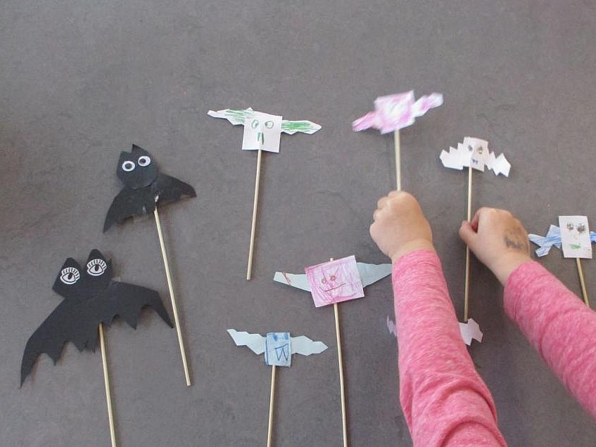 Fasziniert von den Skizzen und großen Flügen der Fledermäuse philosophierten die Erzieherinnen und Erzieher mit den Kindern darüber, was passieren würde, wenn aus unseren Armen Flügel wachsen würden. Ein Mädchen rief begeistert: "Unter den Achseln wächst uns dann eine Haut bis zur Hand."