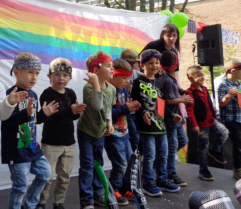 Es wurde gesungen und getanzt u. a. zum Lied „Over the Rainbow“ von Judy Garland sowie zum Kinderlied der Blaukarierten. Das Lied beschäftigt sich mit dem Anderssein und ruft zu mehr Toleranz und Wertschätzung seinen Mitmenschen gegenüber auf. ,,Die Bühnenschow der Kinder war das Highlight! Die Kinder haben das großartig gemacht!", schwärmt Einrichtungsleiterin Gisela Kruse.