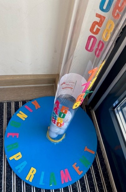 Mit Hilfe unseres Pfandbaumes sammeln die Kinder leere Pfandflaschen, welche sie dann zum Pfandautomaten bringen. Der Erlös bleibt dem Kinderparlament zur Erfüllung ihrer Wünsche.