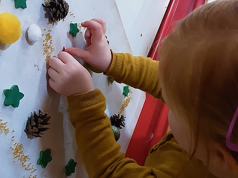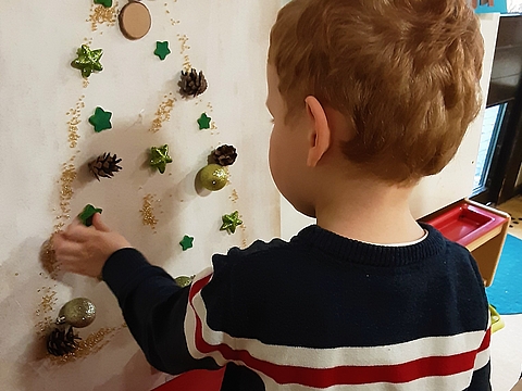 Im Keller haben die Erzieherinnen, Erzieher und Kinder vom FRÖBEL-Kindergarten & Familienzentrum An St. Matthias ganz viel Weihnachtsdekoration gefunden, die in der Einrichtung schon seit einiger Zeit nicht mehr benutzt wurde.