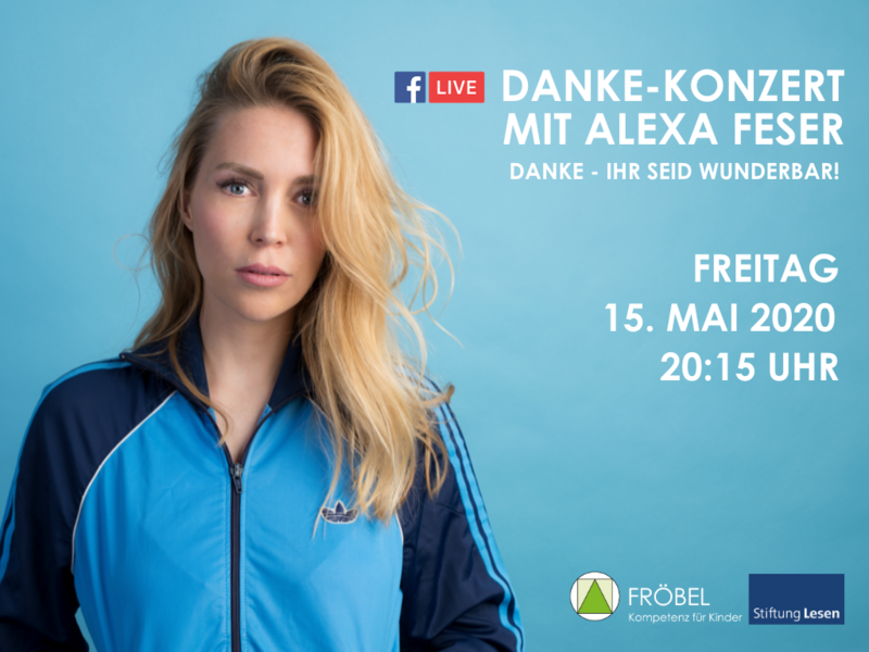 Danke, ihr seid wunderbar! Unter diesem Motto präsentieren wir Alexa Feser ("Wunderfinder") live im Konzert - zeitgleich gestreamt auf den Facebook-Seiten von FRÖBEL und der Stiftung Lesen: