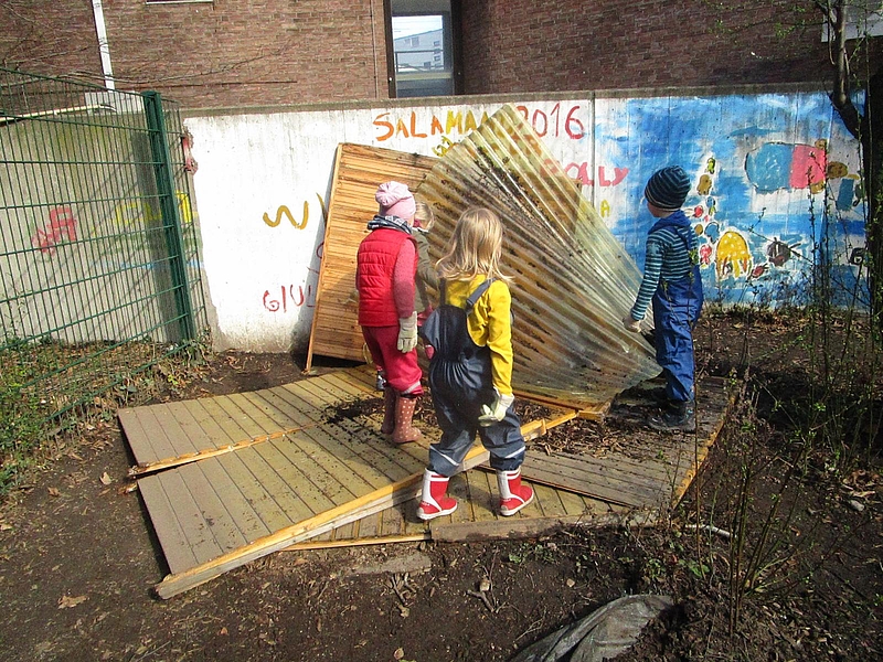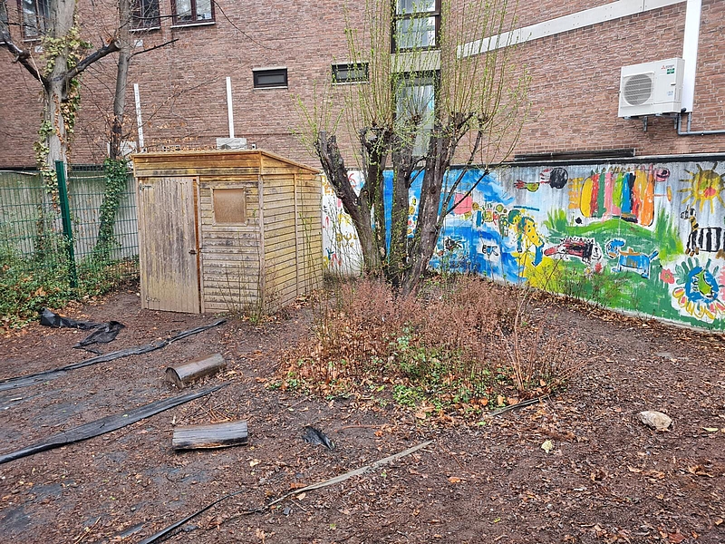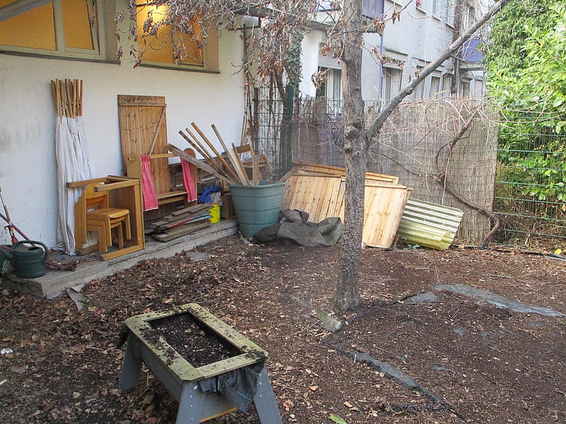 Im FRÖBEL_Kindergarten Maria Montessori soll ab März 2021 der kleine Innenhof umgestaltet werden - die Kinder helfen bei den Vorbereitungen fleißig mit.