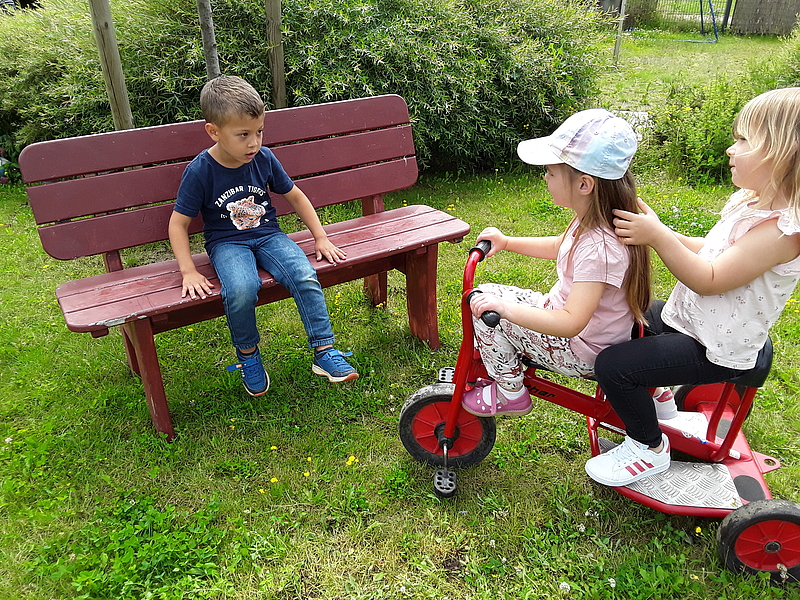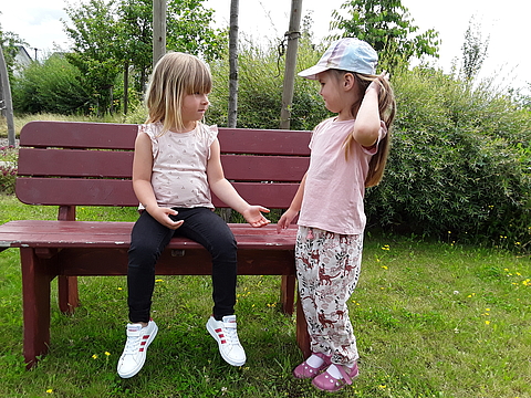 Im FRÖBEL-Kindergarten Pfiffikus in Kerpen haben sich die Kinder und pädagogischen Fachkräfte überlegt, wie das Gefühl von Zugehörigkeit und Empathie gestärkt werden kann und sind dabei auf die „Freundschaftsbank“ gekommen.