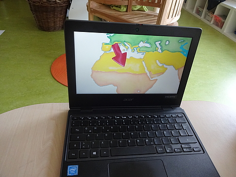 Im Atelier haben die Kinder mit ihren Handabdrücken eine Weltkugel gestaltet. Zuvor haben sie gemeinsam mit den pädagogischen Fachkräften überlegt, aus was unsere Erde überhaupt besteht und welche Form diese hat. "Sie besteht aus Wasser, Land und Luft." Außerdem waren die Kinder sich einig, die Erde ist rund und hat folgende Farben: blau, grün, weiß und gelb. Nachdem sie mit Hilfe einer Kordel und einem Stift, den Kreis aufgezeichnet haben, fingen sie an sie zu gestalten. Sie sieht schon super aus, findet ihr nicht auch? Ihre Fußspuren werden sie auch noch hinterlassen.