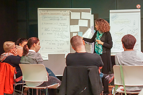 Zur Einstimmung präsentierten zunächst Prof. Dr. Catherine Walter-Laager (Universität Graz) und anschließend Dr. Caroline Wronski (FH Potsdam) einen wissenschaftlichen Einblick in das Thema Sprachbildung in Kindertagesstätten. Am Nachmittag hatten die Teilnehmer*innen die Möglichkeit aus sechs verschiedenen praxisnahen Workshop-Themen auszuwählen und sich so intensiv mit ihren Kolleg*innen zu Themen wie „(Sprach)Anregende Räume für und mit Kindern gestalten“ oder „Sprachliche Vielfalt im Kita-Alltag – wertschätzende und vorurteilsbewusste Zusammenarbeit mit Familien“ auszutauschen und weiterzubilden.