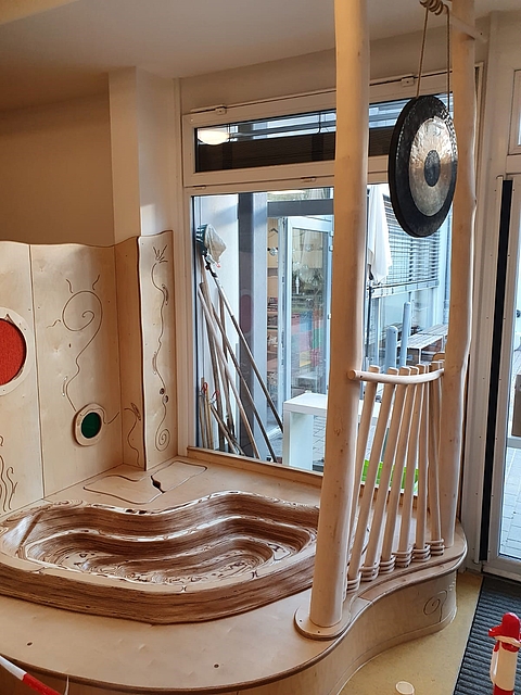 Letzte Woche wurde im Foyer des Kindergartens ein neues Spielgerät installiert, das die pädagogischen Fachkräfte bereits vor Monaten mit der Firma Kinder(t)räume eigens für ihren Kindergarten planten.