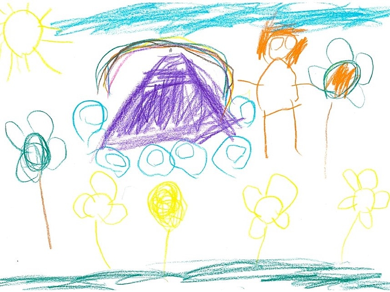 Nun hatten sie es sich zur Aufgabe gemacht, mit den Kindern eine Rückzugsmöglichkeit, die zeitgleich als Ruheort dienen soll, zu konstruieren. Dem Wunsch der Kinder „Zelte“ auf dem Außengelände zu platzieren, sind sie liebend gerne nachgekommen. Ein Kind fertigte eine Planungsskizze an, sodass sie gemeinsam auf Zeltsuche gehen konnten. Raus kamen 2 kleine Weidentipis und ein Weideniglu.