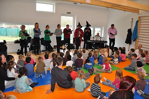 Der FRÖBEL-Kindergarten Wunderkind in Kerpen hatte diese Mal das große Glück, zu den auserwählten Gastgebern der WDR-Musiker zu gehören. Im Rahmen des Programms "Plan M - mehr Musik machen" kamen Profimusiker aus den verschiedenen WDR-Orchestern in den Kindergarten. Zusammen mit dem WDR Sprecherensemble wurden die Kinder auf eine 60-minütige Reise zu allen bekannten Kinderliedern aus den WDR Fernsehsendern mitgenommen: Mit der Bahn ging es durch das Lummerland aus den Büchern von Jim Knopf und Lukas dem Lokomotivführer. Pippi Langstrumpf wurde ein Besuch abgestattet, Balu der Bär getroffen und natürlich die Biene Maja auf ihrem Flug begleitet.