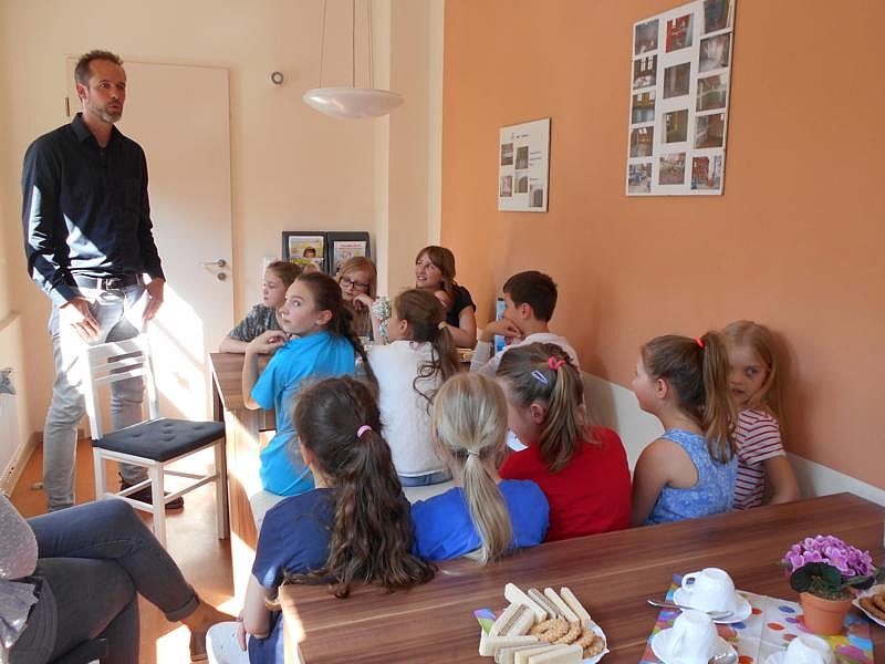 Im Hort MITTENDRIN besuchte Mita Roß, lokale Netzwerkpartnerin der Stiftung „Haus der kleinen Forscher“, zusammen mit Maik Bethke, stellvertretender Hauptgeschäftsführer der Industrie- und Handelskammer Cottbus, und Rika Zschornack von der Deutschen Kreditbank, die Einrichtung, um das begehrte Zertifikat „Haus der kleinen Forscher“ zu überreichen.