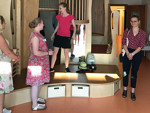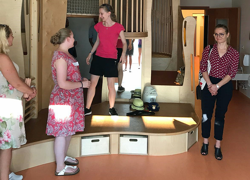 Aber auch das Haus und seine Räume konnten beim Rundgang überzeugen. Besonders gut kamen die individuell gestalteten Holzeinbauten und Möbel bei den pädagogischen Fachkräften an.