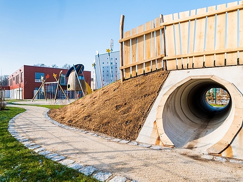 Ein weiterer Vorteil liegt darin, dass Kinder bereits im frühen Alter architektonische Qualitäten kennen lernen dürfen: Einblicke, Durchblicke und Weitblicke. Solche Qualitäten zeigen sich am besten, wenn sie nicht verbaut und somit frei sind.