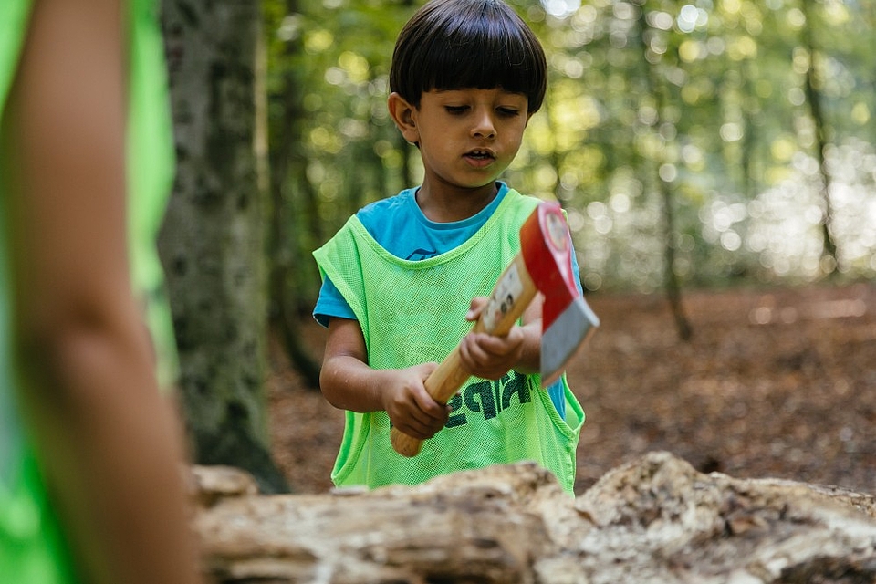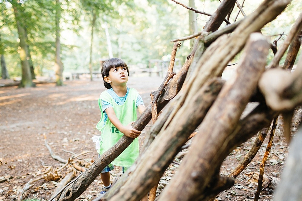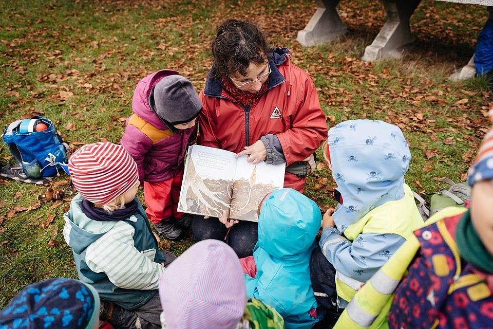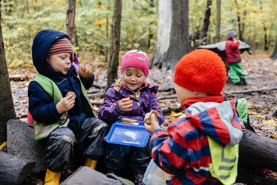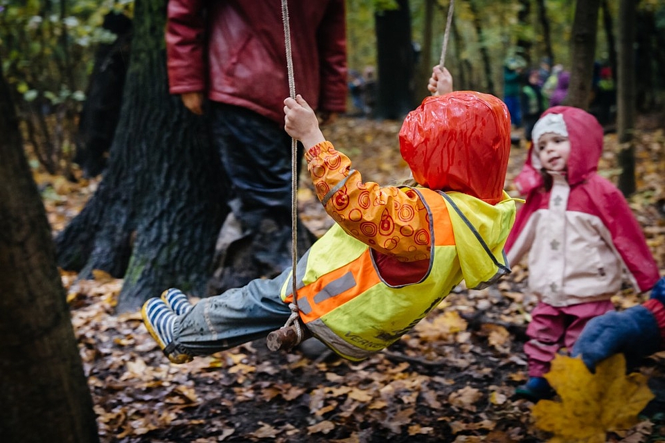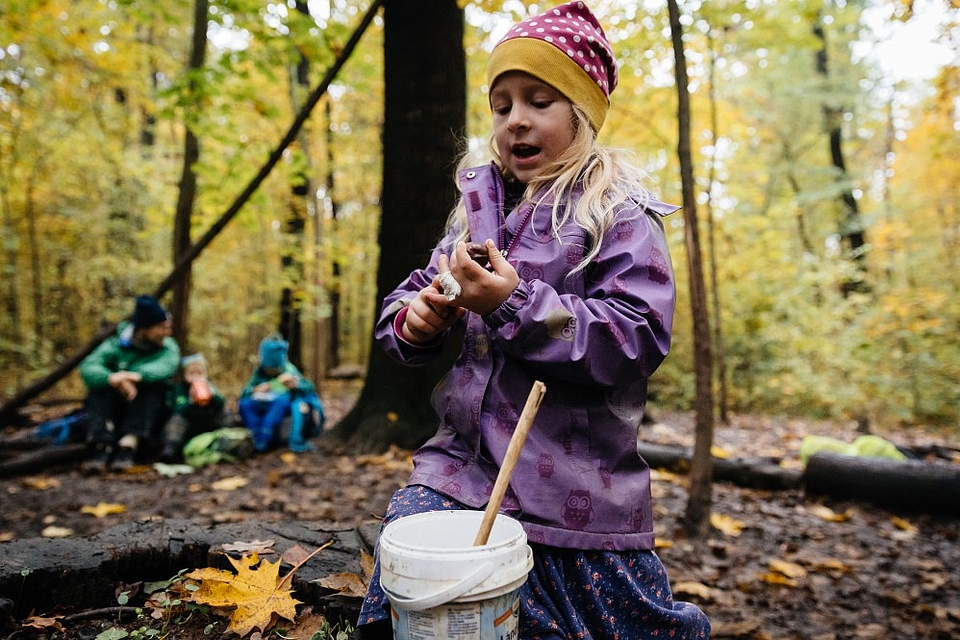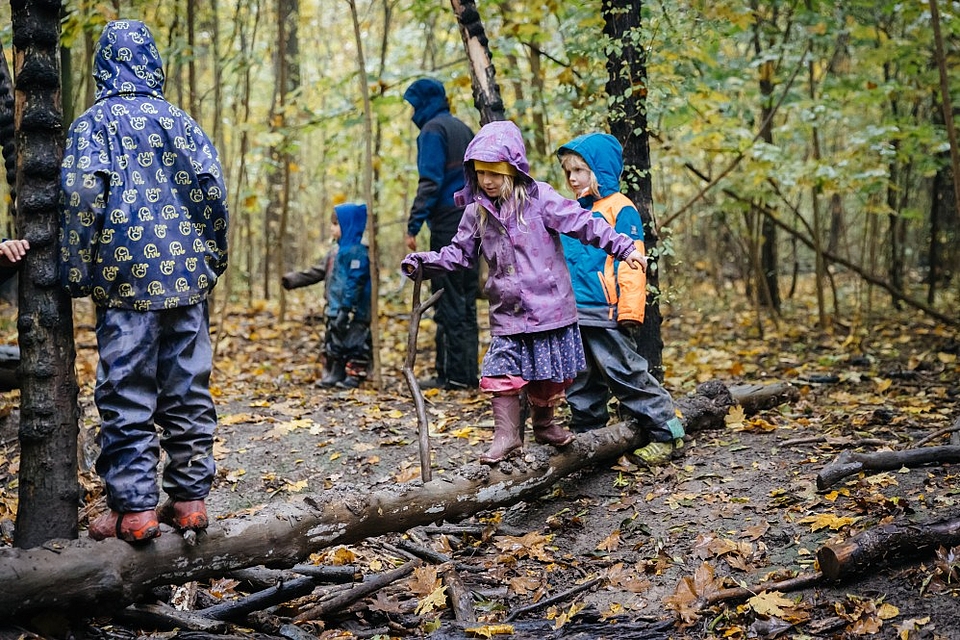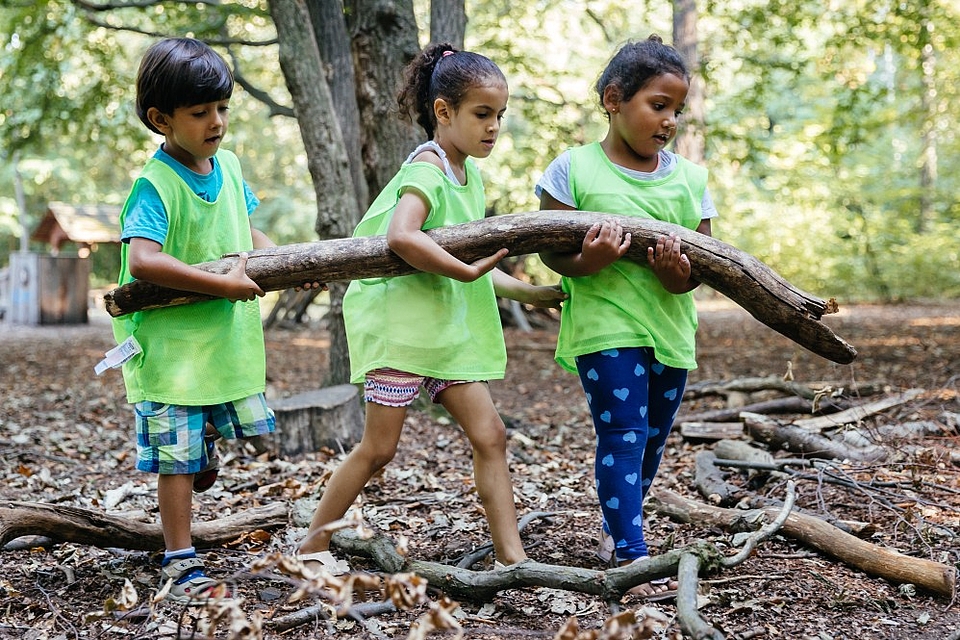 Wald und Natur bieten Kindern jedoch eine viel größere Vielfalt an Formen, Oberflächen, Farben und Gerüchen und damit eine ganz besondere Lernumgebung. Es gibt kein Klettergerüst und keine Rutsche, dafür aber Baumwurzeln und Baumstämme, die zum Klettern und Balancieren einladen. Zwischen kleinen Bäumen lässt sich eine Höhle bauen, aus der im Spiel auch eine Feuerwache entstehen kann, Stöcke werden zu Feuerwehrschläuchen.