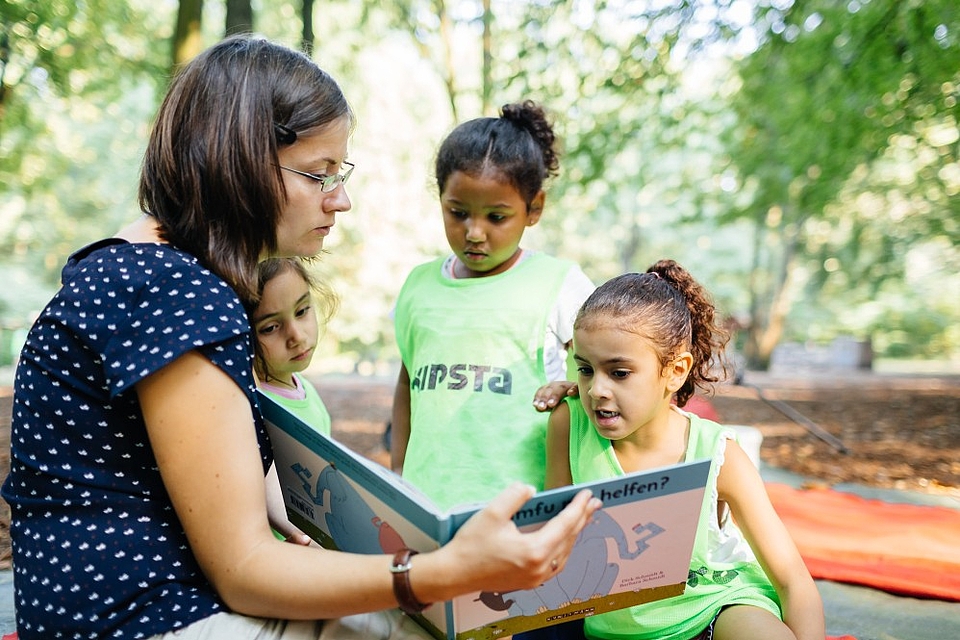 Dass Waldausflüge noch sehr viel mehr als Bewegung im Freien leisten können, zeigt ein besonderes Projekt des FRÖBEL-Kindergartens Highdechsen in Berlin-Neukölln. Die Einrichtung wird von vielen Kindern mit unterschiedlichen Kulturen und nicht-deutschen Familiensprachen besucht. Wie aber können Kinder am besten im Erwerb der deutschen Sprache unterstützt werden, wenn im familiären Umfeld und im Kiez kaum Deutsch gesprochen wird?