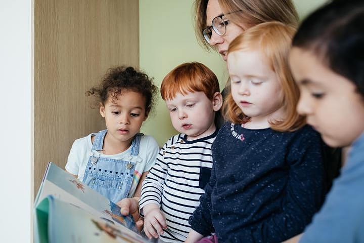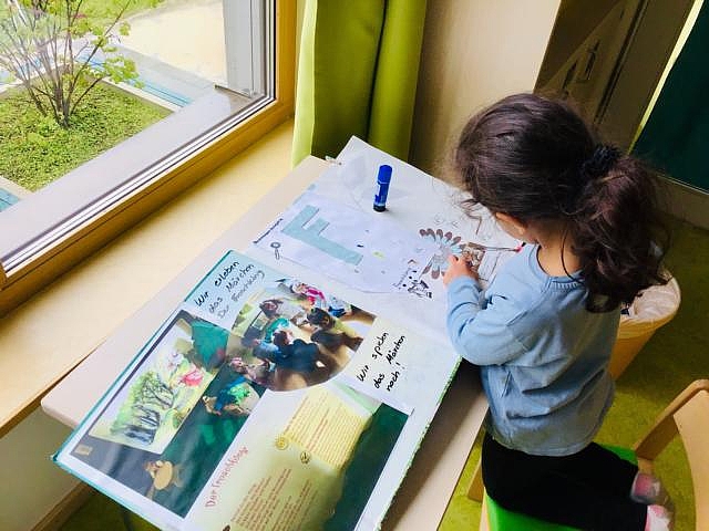 Einen besonderen Stellenwert hat die kreative Arbeit mit Büchern. Die Kinder verfilmten z. B. den Grüffelo. Regelmäßig gestalten sie eigene Bücher zu Märchen und Geschichten. Außerdem besuchen die Kinder im Jahr vor der Einschulung regelmäßig die Bibliothek. Auch die Eltern werden aktiv in den Kita-Alltag einbezogen, z. B. innerhalb eines interaktiven oder mehrsprachigen Vorlesenachmittags.
