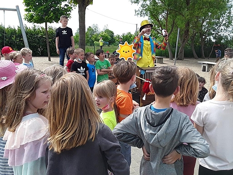 Zum Internationalen Kindertag am 1. Juni besuchte der „Leierkastenmann aus Brieselang“ Detlef Luther den FRÖBEL-Hort Pusteblume. Mit seinem Besuch wollte er auch auf eine ganz besondere Aktion aufmerksam machen: