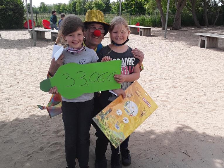 Drei Mädchen der 2. Klasse haben vor einiger Zeit Detlef Luther in Brieselang spielen sehen und kamen mit ihm ins Gespräch. Die drei Mädchen aus unserem Hort habe daraufhin überlegt, wie sie helfen können. Sie kamen auf die Idee, besitzerlose Pfandflaschen, die sie im Hort fanden, zu sammeln: