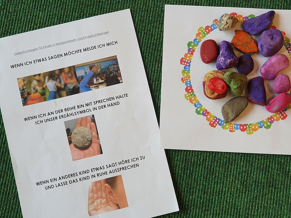 Wie läuft eine Kinderkonferenz ab? Aus verschiedenen Abstimmungsmethoden - von Handzeichen bis hin zu Symbolen - wählen die Kinder die passende Methode. Jedes Kind kann sich einbringen. Die Kinder erleben sich als ein Teil der Gemeinschaft, in der sie mitbestimmen dürfen. Es macht ihnen Spaß und zeigt, wie toll es sein kann, seine Meinung zu äußern.