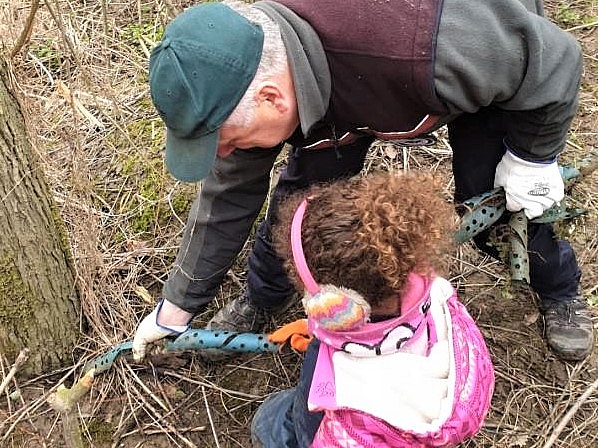 Bei ihrer ersten Müllsammelaktion am Rhein fielen den Kindern des FRÖBEL-Kindergartens Sternschnuppe grüne lange Plastikschlangen auf. Sie fragten sich, was das ist und wofür man es verwendet. Um das Mysterium aufzuklären, besuchte sie der zuständige Förster und erklärte ihnen, was es mit diesen Schlangen auf sich hat.
