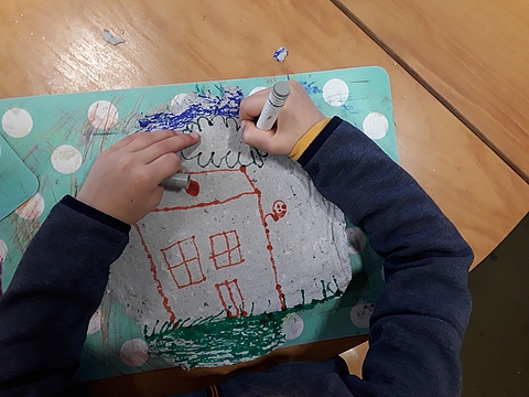 Wir haben mit Ausdauer und Freude unser eigenes Papier hergestellt und auch wenn die Eigenschaften beim Malen von den Kindern als hart, rüppelig oder zerbrechlich beschrieben wurden, haben sie jedes einzelne Blatt wertgeschätzt und stolz bemalt.
