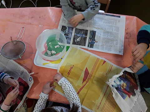 Um der Verschwendung von Papier aus dem Weg zu gehen, haben sich die Kinder des FRÖBEL-Kindergartens An St. Matthias eine nachhaltige Alternative überlegt.