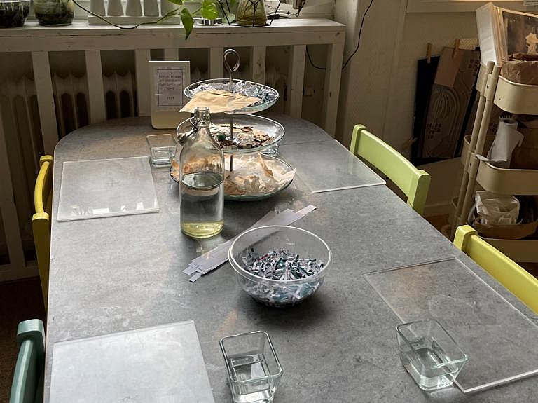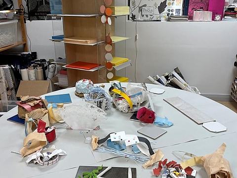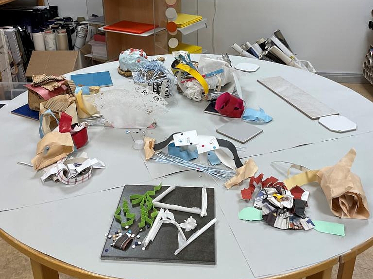 Früh am Morgen des dritten Tages besuchte das Team das „Ateljé Källan“. Inspiriert von den unterschiedlichen Räumen und Materialien wie Holz, Glas, Metall und diversen Stoffe, die von Industrie, Handwerk, Gewerbe oder Handel abfallen, ließen sie ihrer Kreativität in verschiedenen Projekten freien Lauf.