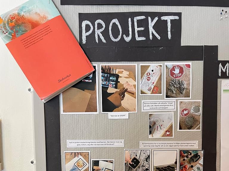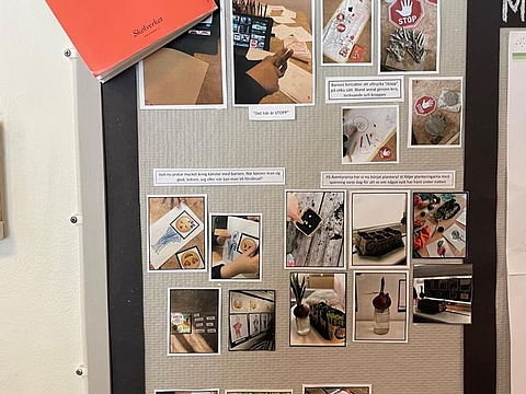 In der Vorschule „Brolunda“ hatte das Team die Möglichkeit, sich mit den Pädagoginnen und Pädagogen vor Ort auszutauschen, Einblicke in ihre Arbeitsweisen zu erhalten und die Räumlichkeiten zu erkunden. Die Ästhetik der Räume ließ sofort den Reggio-Ansatz erkennen: Das Mobiliar war von warmen Holzfarben geprägt, das Material wurde nachhaltig genutzt und Wände erzählten von besonderen Projekten der Kinder. Außerdem fanden sie den Aspekt der Natur in fast allen Bereichen wieder. Pflanzen dienen hier nicht nur für das Raumklima, sondern auch zur Inspiration, um kreativ und forschend auf Entdeckungsreise zu gehen. Die Vorschule „Brolunda“ legt einen besonderen Fokus auf die Sprachentwicklung, die durch eine gelebte Schriftkultur deutlich wird. So werden themenspezifisch Worte mit Bildern verknüpft und im jeweiligen Bildungsbereich aufgehängt. Zusätzlich werden die Wörter mit einer Gebärde versehen, die Teil eines eigens kreierten Systems ist. Diese Gebärdensprache findet sich in allen kommunalen Einrichtungen wieder und wird von allen Fachkräften im Dialog mit den Kindern genutzt.