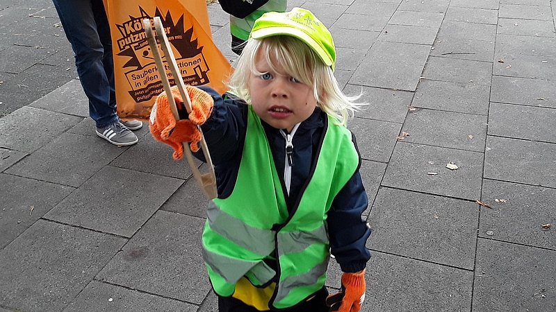 Die Reaktionen der Menschen waren wieder überaus positiv und die Kinder erhielten viel Lob. Besonders stolz waren sie, als die AWB Stadtreinigung hinzu kam und die kleinen "Kollegen" für ihre harte Arbeit lobten.