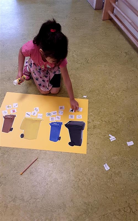 Auch die kleinen Expert*inen beschäftigten sich im Expertentreff intensiv mit dem Thema Mülltrennung. Da dieses Thema bereits einen aktiven Teil des Kita-Alltages darstellt, fiel ihnen die Zuordnung unterschiedlicher Müllsorten zu den jeweiligen Mülltonnen überhaupt nicht schwer.