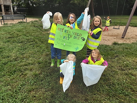 Am Freitag, dem 17.09.21, ist der FRÖBEL-Kindergarten Regenbogen auf große Müllsammeltour gegangen.