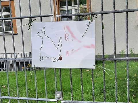 Zum Kindergarten führt ein Weg, der durch kleine Rasenflächen gesäumt ist. Leider wird die Grünfläche häufig als Hundetoilette benutzt. Das finden die Kinder überhaupt nicht gut: „Weißt du was, Mama? Wir wollen das nicht! Das ist eklig.“ (Leni, 4).