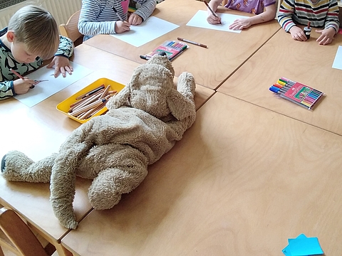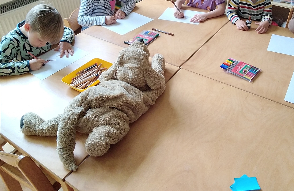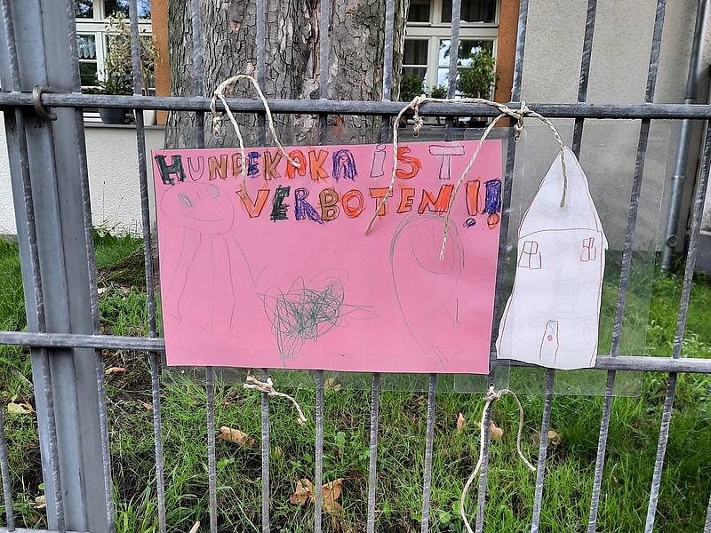 Die Kinder beschlossen im morgendlichen Kreis, etwas dagegen zu unternehmen und die Hundebesitzer für mehr Sauberkeit zu sensibilisieren. Dabei sind sie auf die Idee gekommen, Hinweisschilder zu gestalten. Dabei konnten sie bestimmen, wie die Schilder aussehen und wo sie platziert werden sollen.