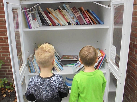 Darüber hinaus haben wir einen offenen Bücherschrank vor unserer Einrichtung. Dieser ist nicht nur für Kinder unserer Einrichtung, sondern für alle Kinder im Stadtteil zugänglich. Ausleihschränke für Bücher gibt es inzwischen in jeder Stadt. Unserer richtet sich jedoch speziell an Kinder.