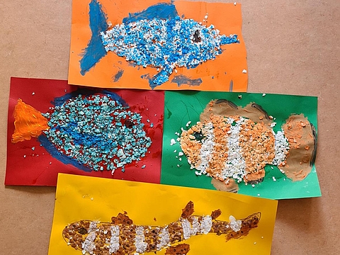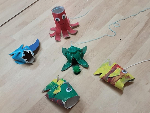 Ihnen ist aufgefallen, dass sie im Alltag viele Dinge unbedacht wegschmeißen - dabei könnte man daraus noch tolle Dinge machen. Die Kinder zum Beispiel haben aus dem gesammelten Müll viele verschiedene Meeresbewohner gebastelt. In Zukunft wollen sie noch mehr darauf achten, von Wegschmeißen zu Upcycling überzugehen.