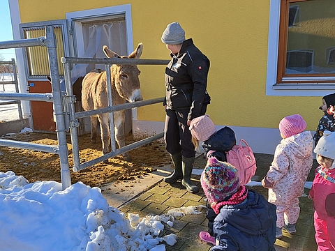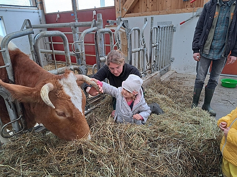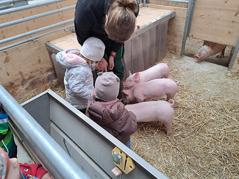 Umso mehr freuen sich alle Beteiligten, dass es gelungen ist, ein Format für Kinder unter drei Jahren zu entwickeln. Der Besuch des Bauernhofs garantiert den Kindern einmalige Erlebnisse, die zahlreiche Sprachanlässe bieten. Immer wieder greifen die Kinder beim gemeinsamen Betrachten von Bilderbüchern Erlebtes auf und berichten zur Freude der Eltern auch begeistert zuhause ganz besonders gern von den Tierbabies.
