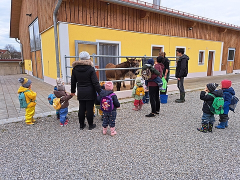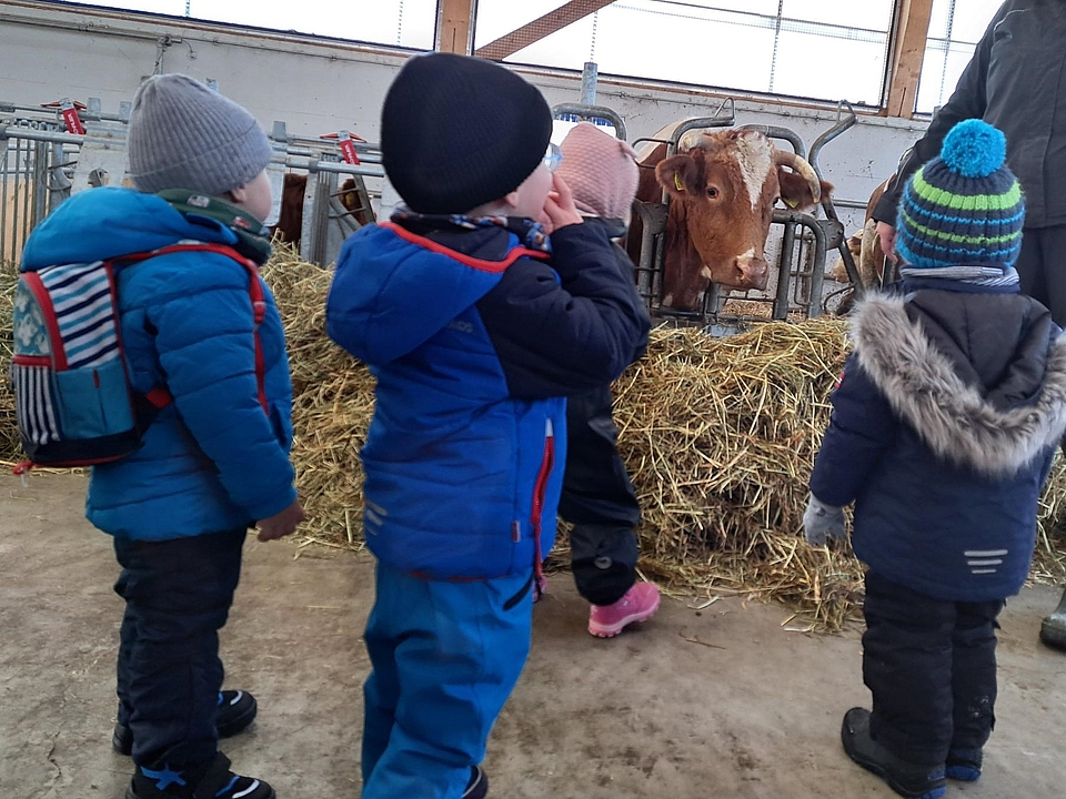 Tiere und ökologische Landwirtschaft erleben - einmal im Monat besuchen die Kinder aus der FRÖBEL-Kinderkrippe Galopperstraße in München den Bio-Bauernhof Gut Riem.
