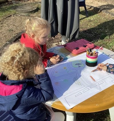 Damit alle Beteiligten wissen, wo etwas im Sinnesgarten hingehört, haben die Kinder eine große Planzeichnung angelegt. Neben einer Wiese, in der die Kinder sitzen und Gespräche führen, soll es auch eine Wildblumenwiese geben, in der sich Insekten ansiedeln können. Auch ein Kräuter- und Schnittblumenbeet haben sich die Kinder gewünscht. Der Barfußpfad soll wieder mit verschiedenen Materialien aufgefüllt werden und vieles mehr.