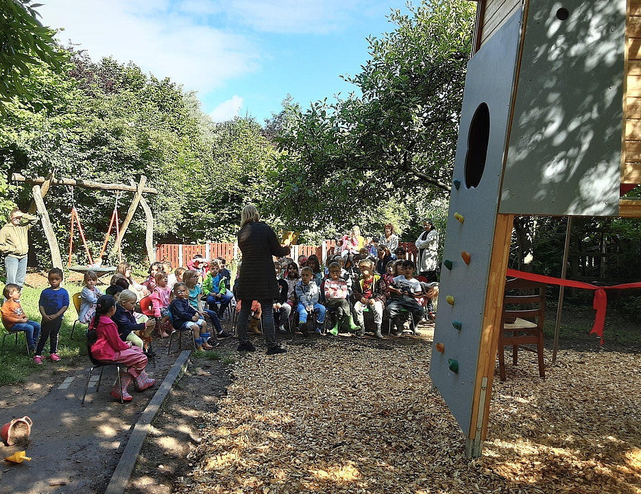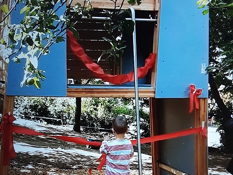Der Garten ist groß, naturnah und hat neben Schaukeln auch eine Rutsche und Sandkisten. Doch die Kinder des FRÖBEL-Kindergarten & Familienzentrums ZAK vermissten mehr Klettermöglichkeiten seit dem das alte Klettergerüst abgerissen werden musste und wollten bei der Neuanschaffung mitbestimmen.