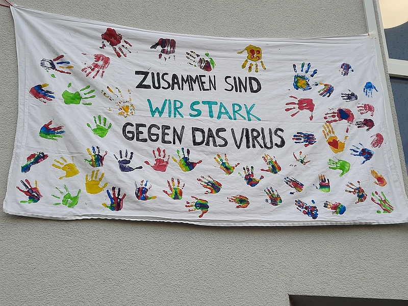 Mit dieser farbenfrohen Botschaft "Zusammen sind wir stark gegen das Virus" wollen wir etwas Freude, gute Laune und Kraft in diese triste und nervenaufreibende Zeit senden.
